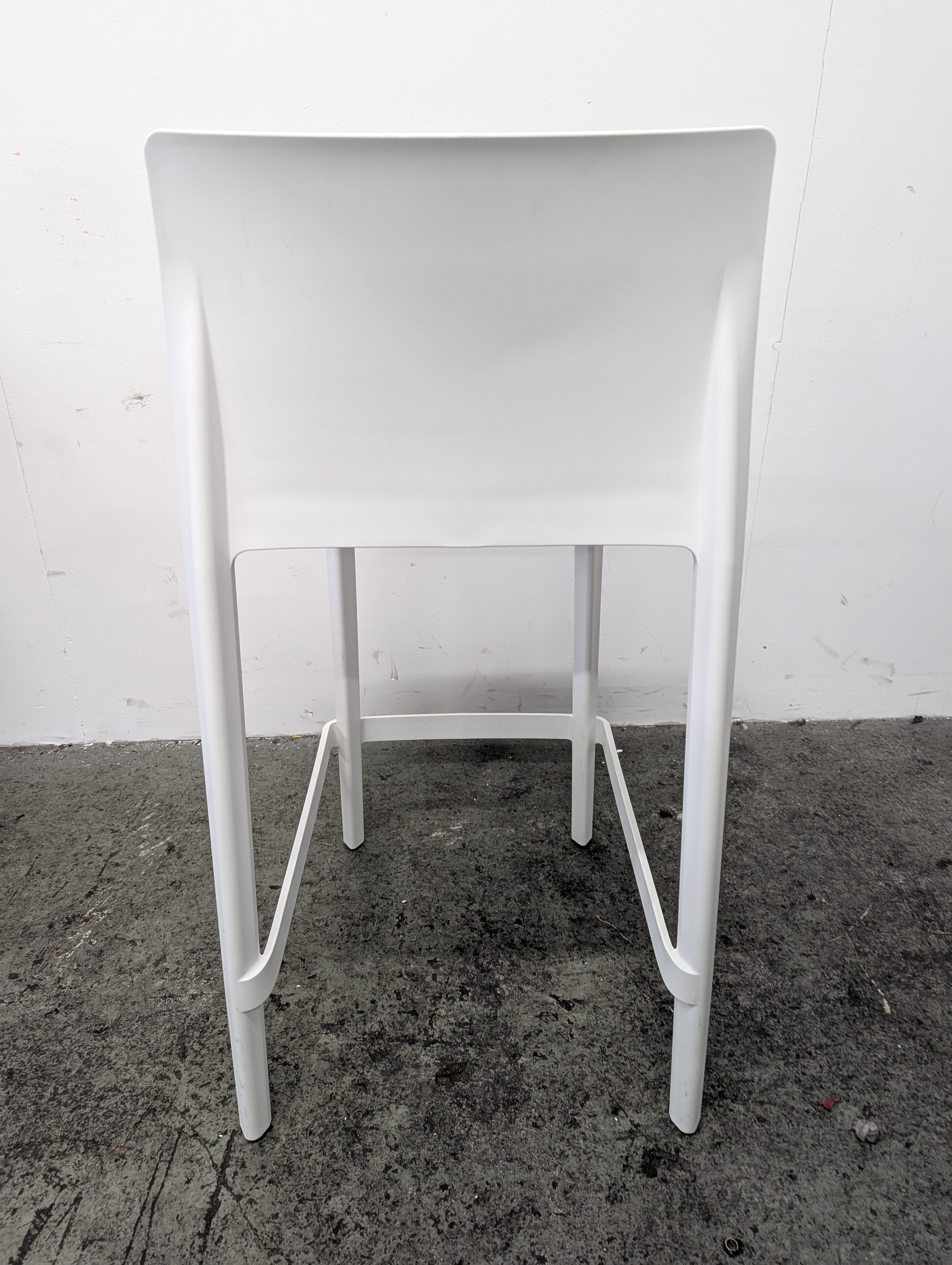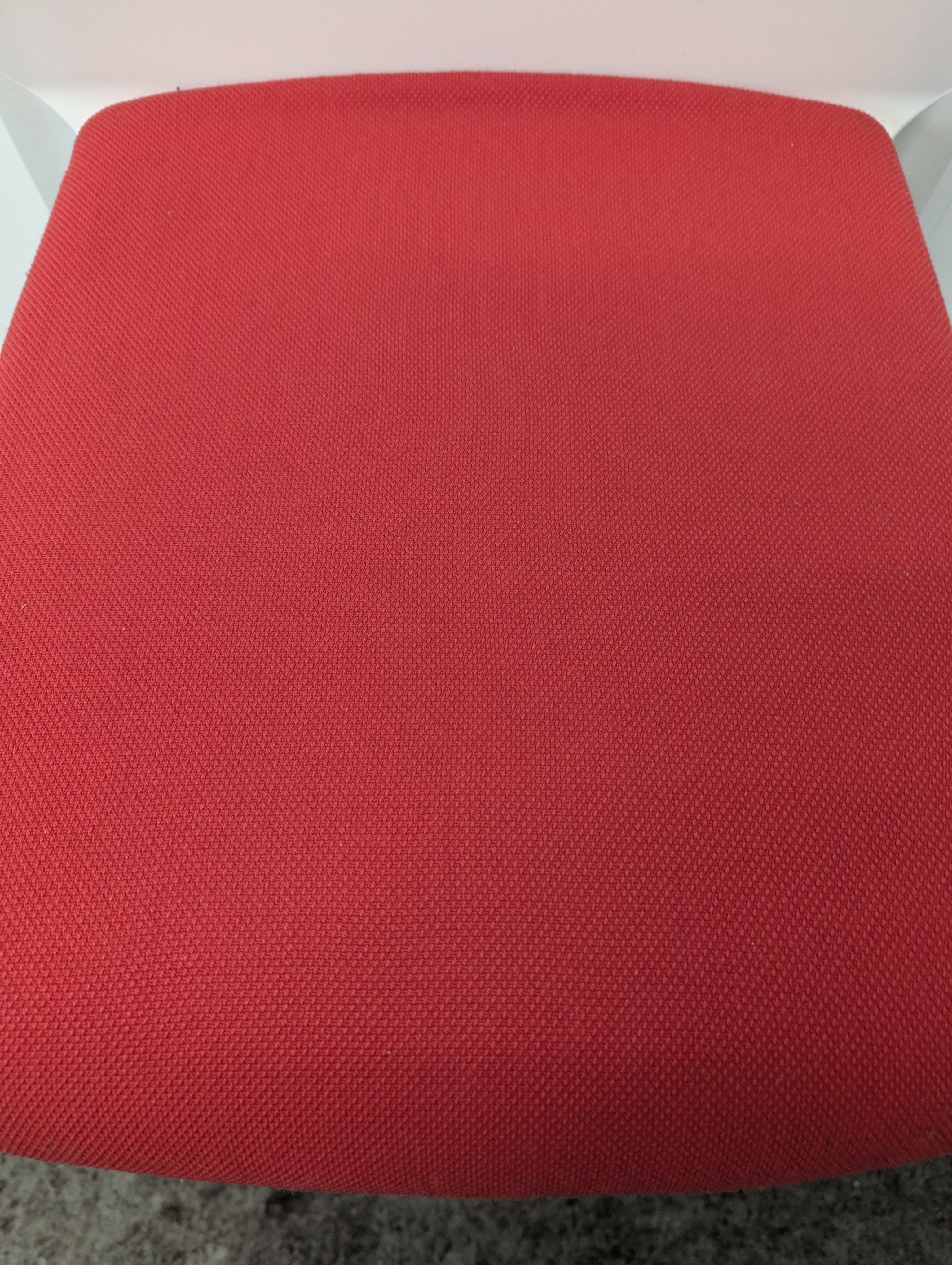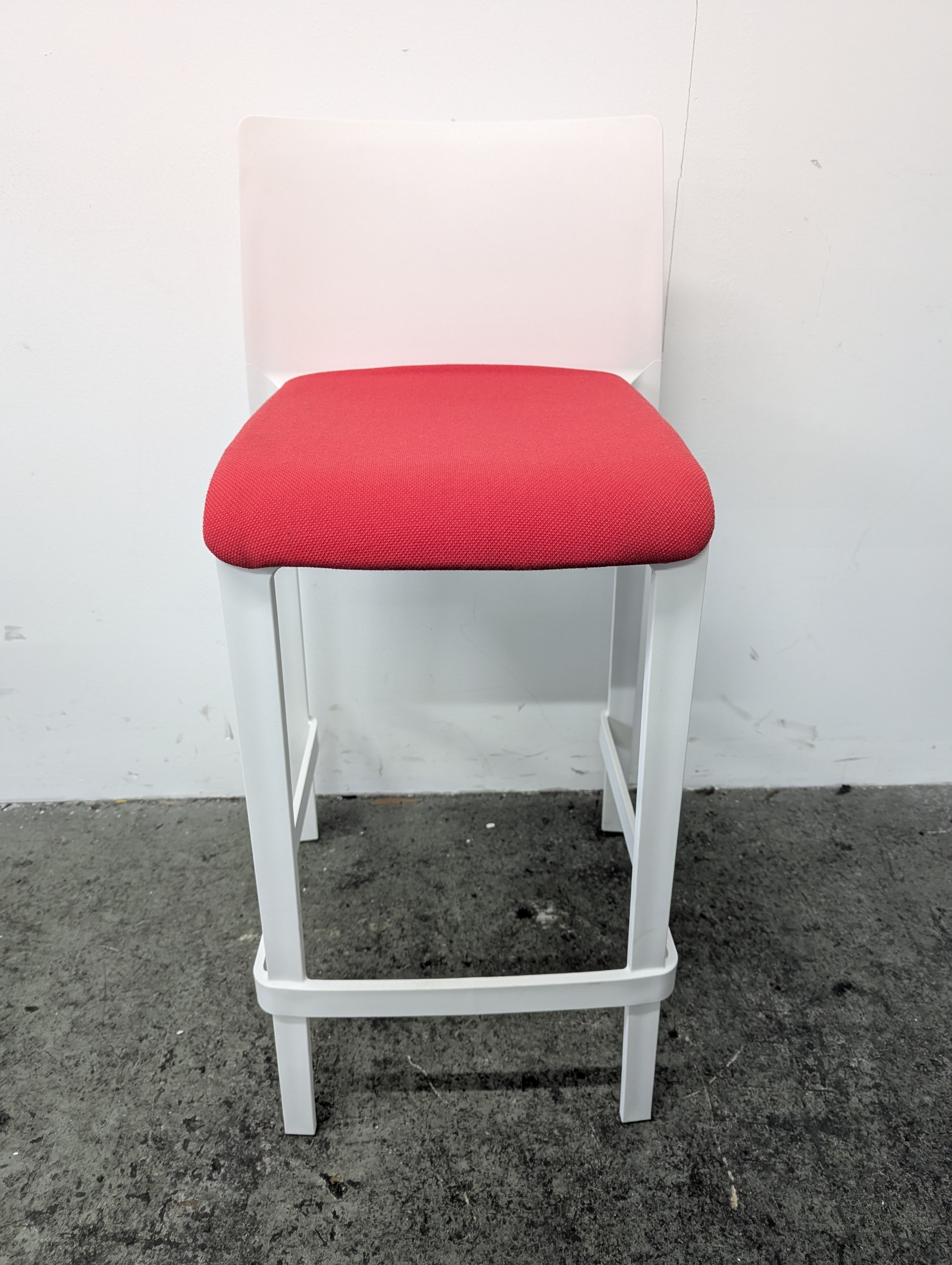 Red upholstered seats and white frames with backrest. Grade B condition (minor signs of use consistent with one year of usage).