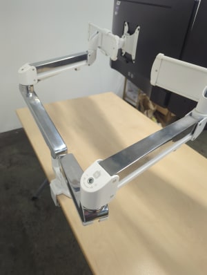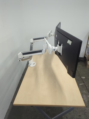 Screens are working but not PAT tested. Includes power cables but no connectors. Set contains two Dell PH2217 monitors with a Ergo Ascend dual monitor arm. RRP for the whole package is over £700.