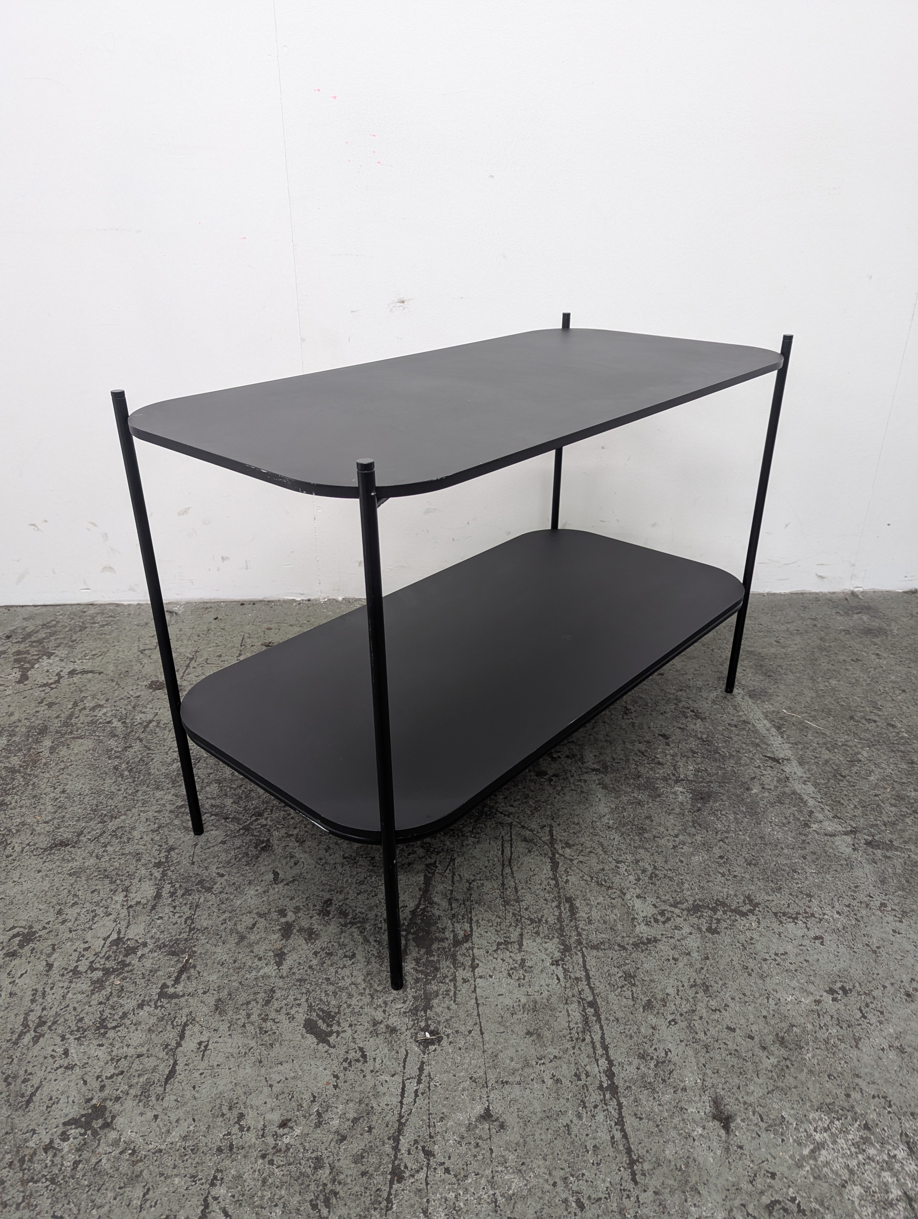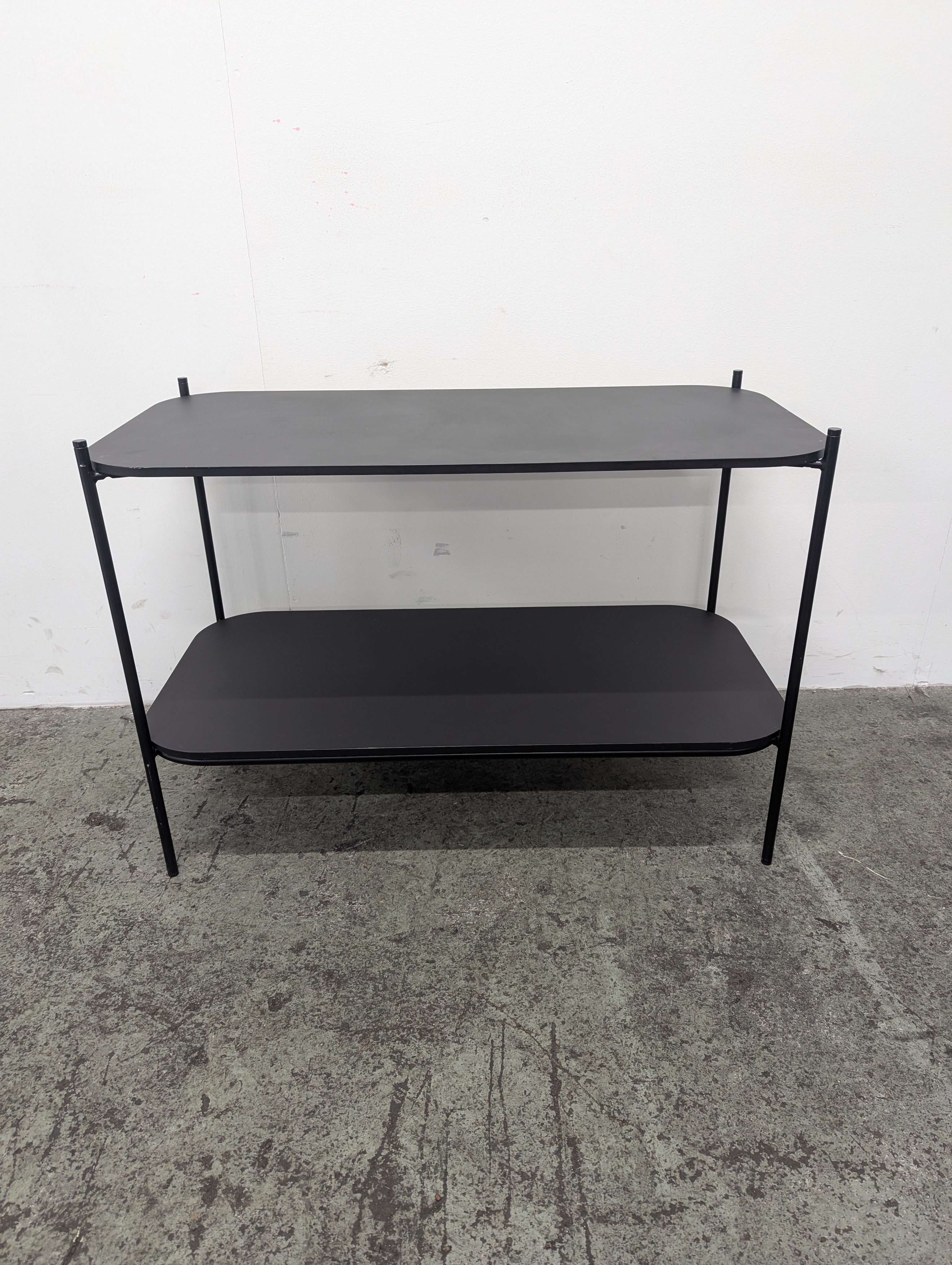 This low level Mozaik storage unit with a minimalist steel frame and two fixed shelves makes for an ideal occasional table for refreshments, books and magazines.