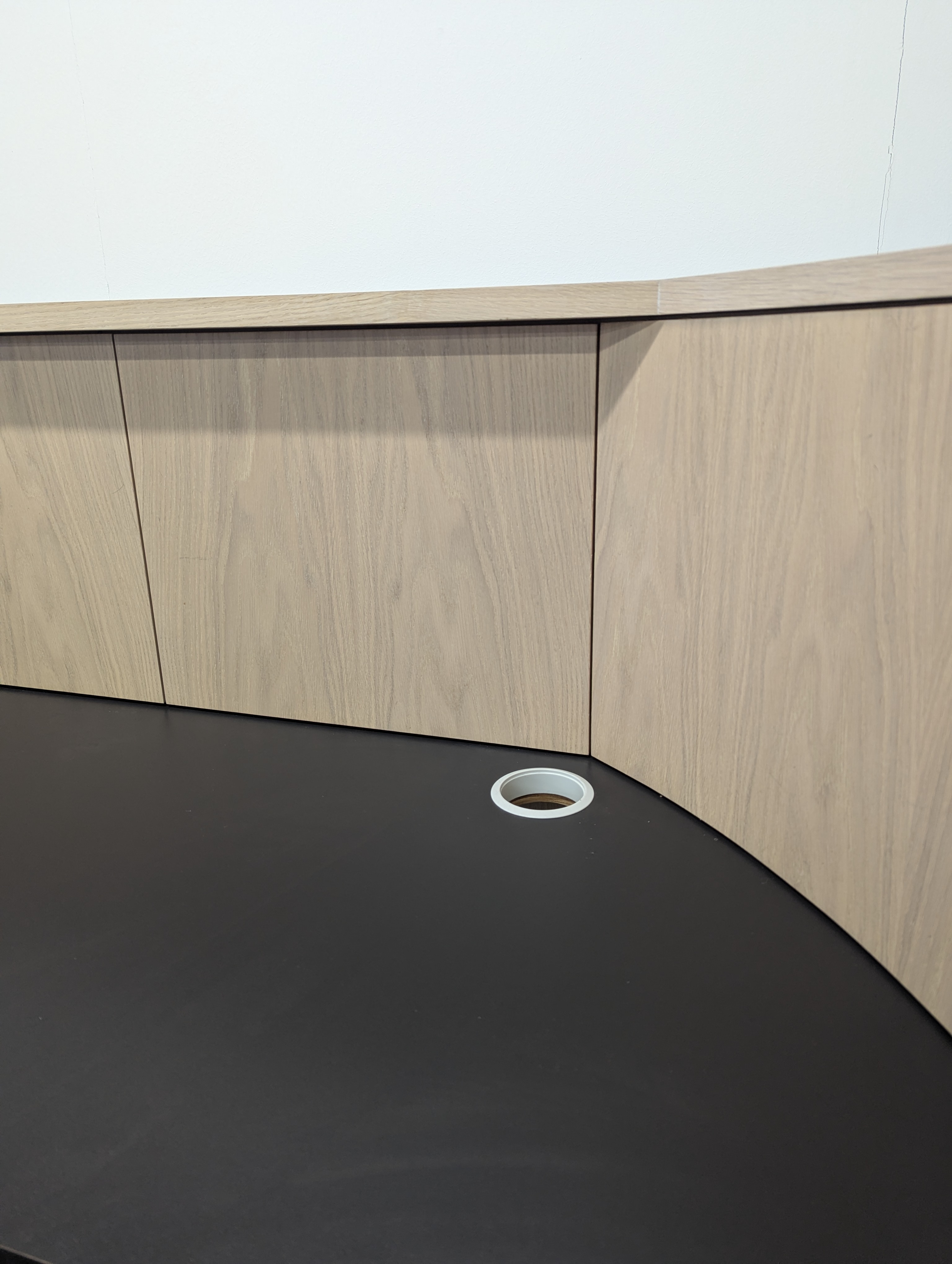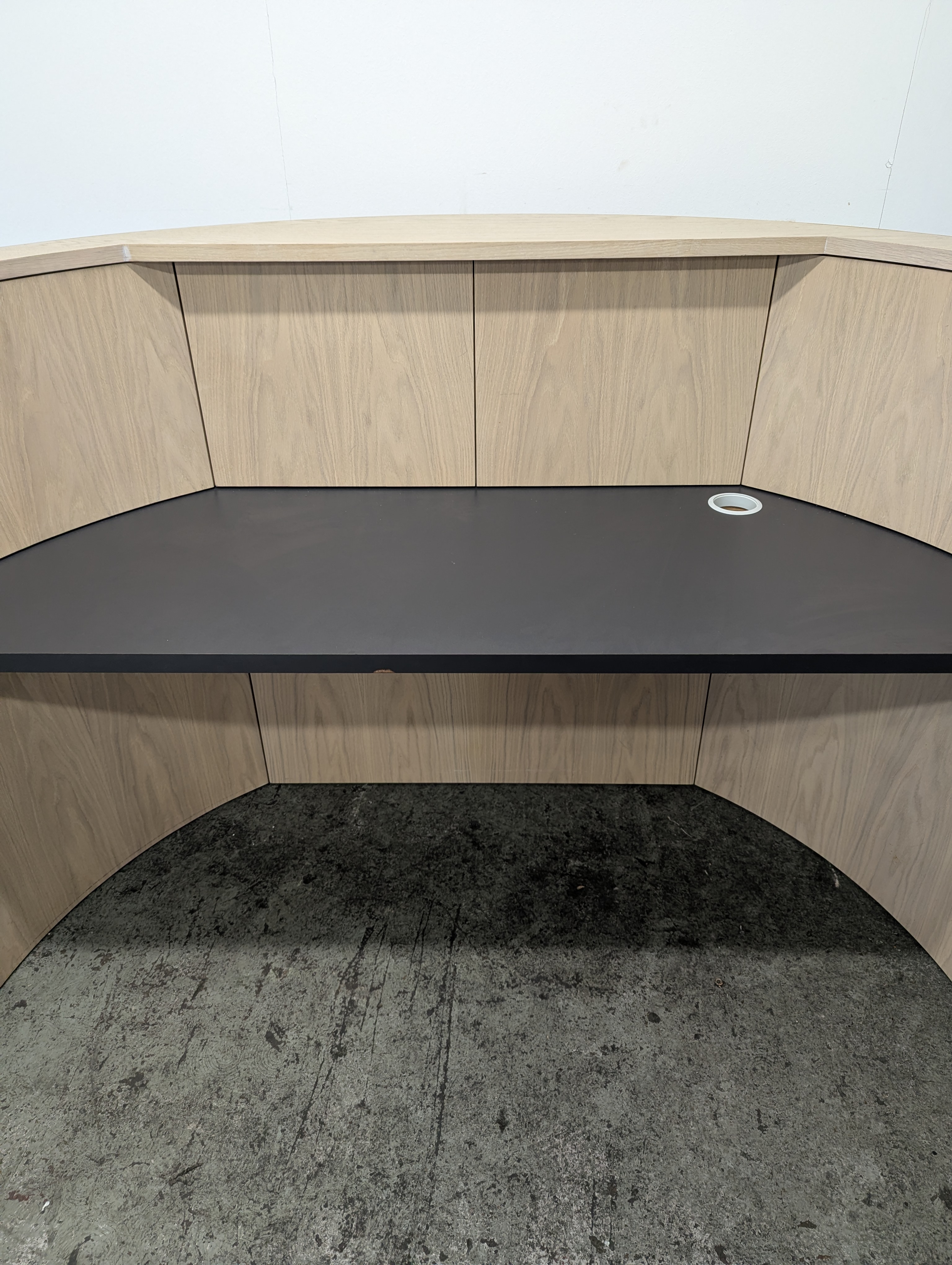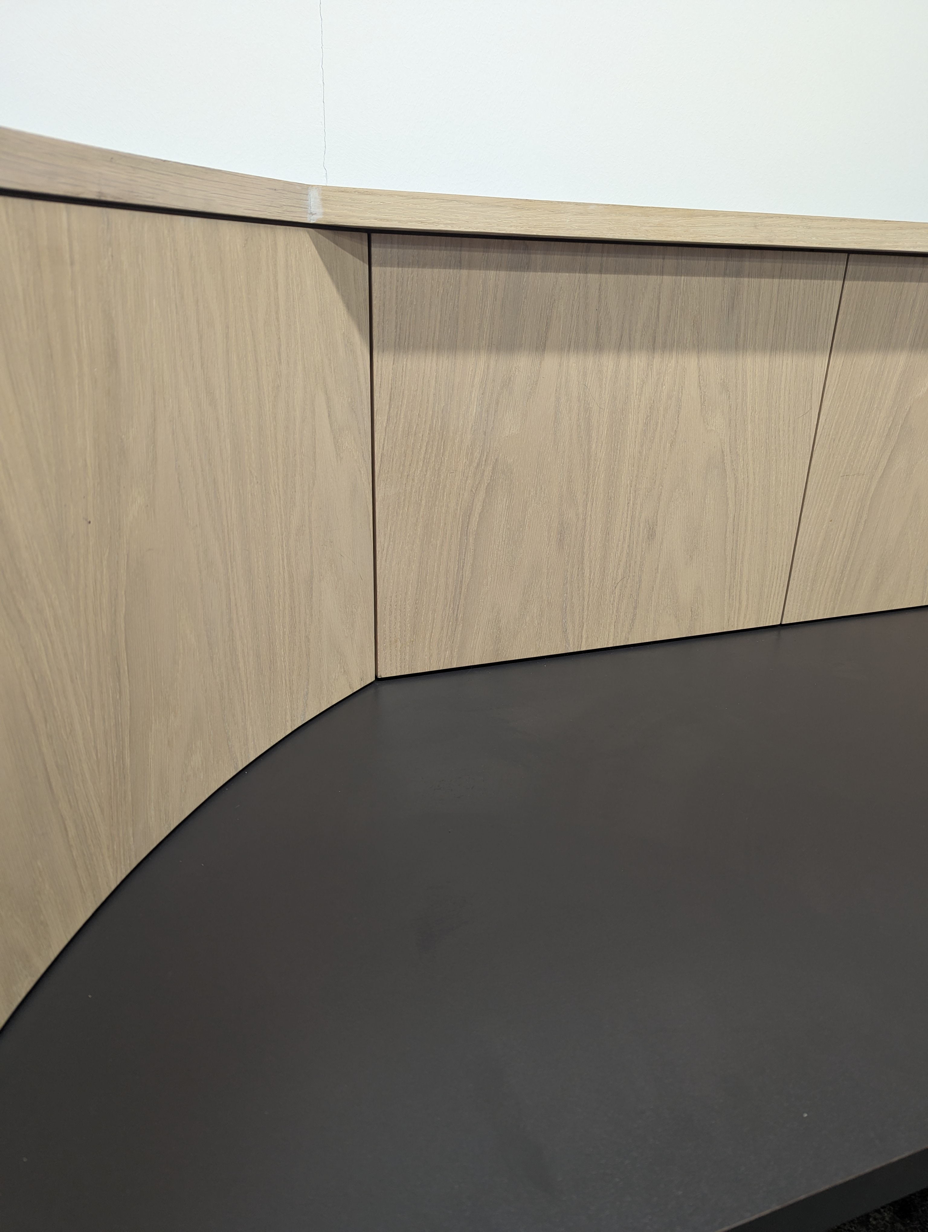 Beautiful natural timber curved reception desk.