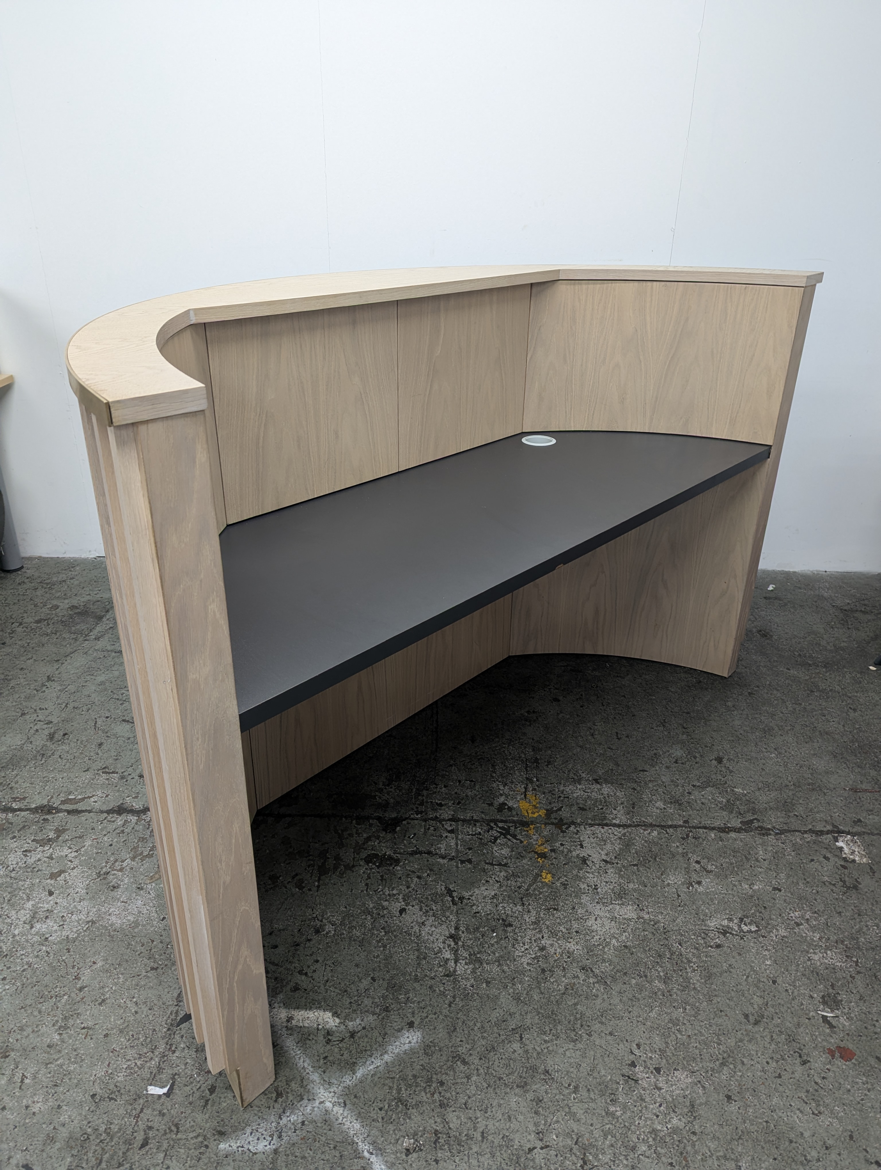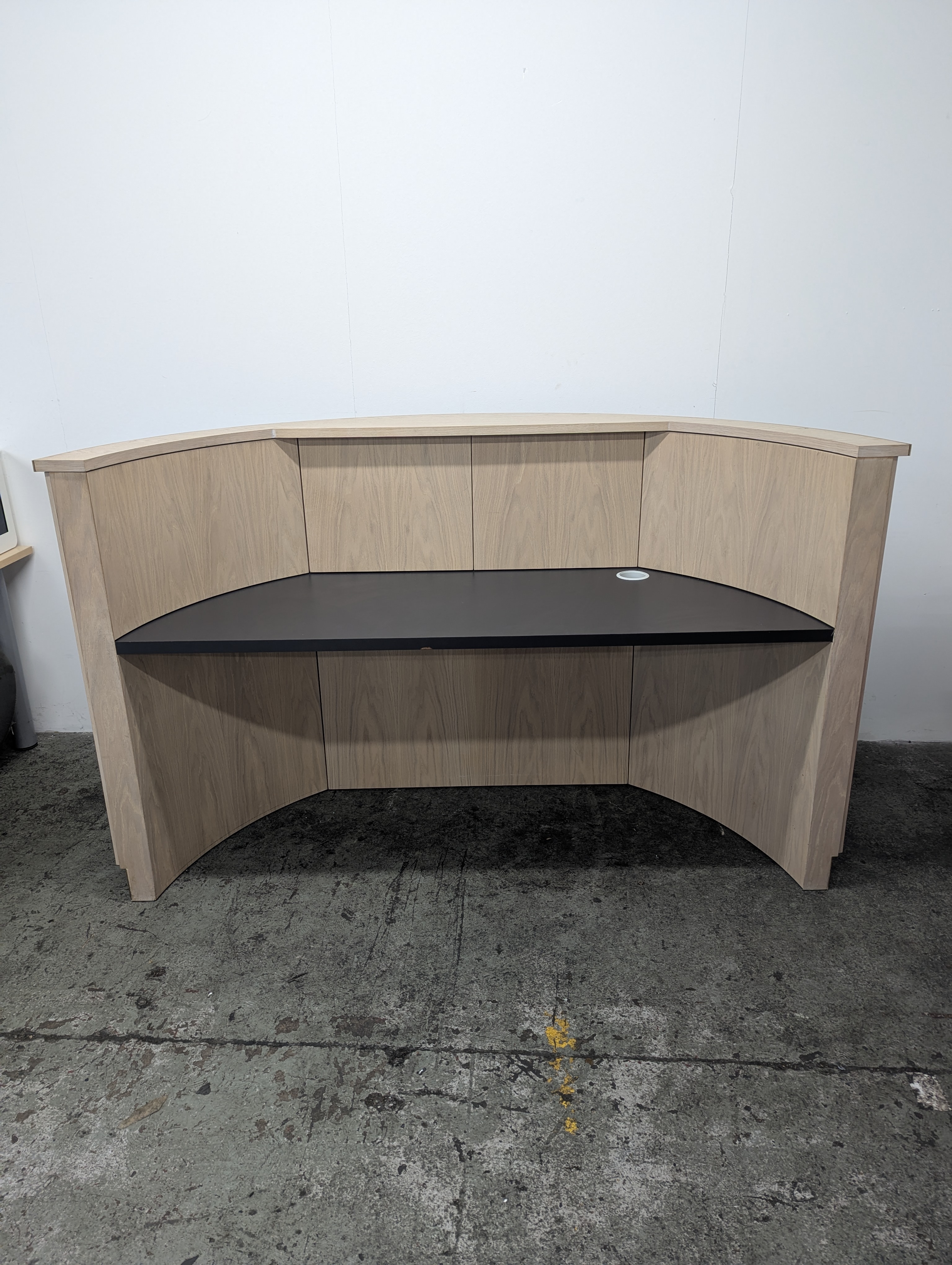 Generally excellent condition, except for chip on receptionist side of desk which we will paint to match the edge (see photos).