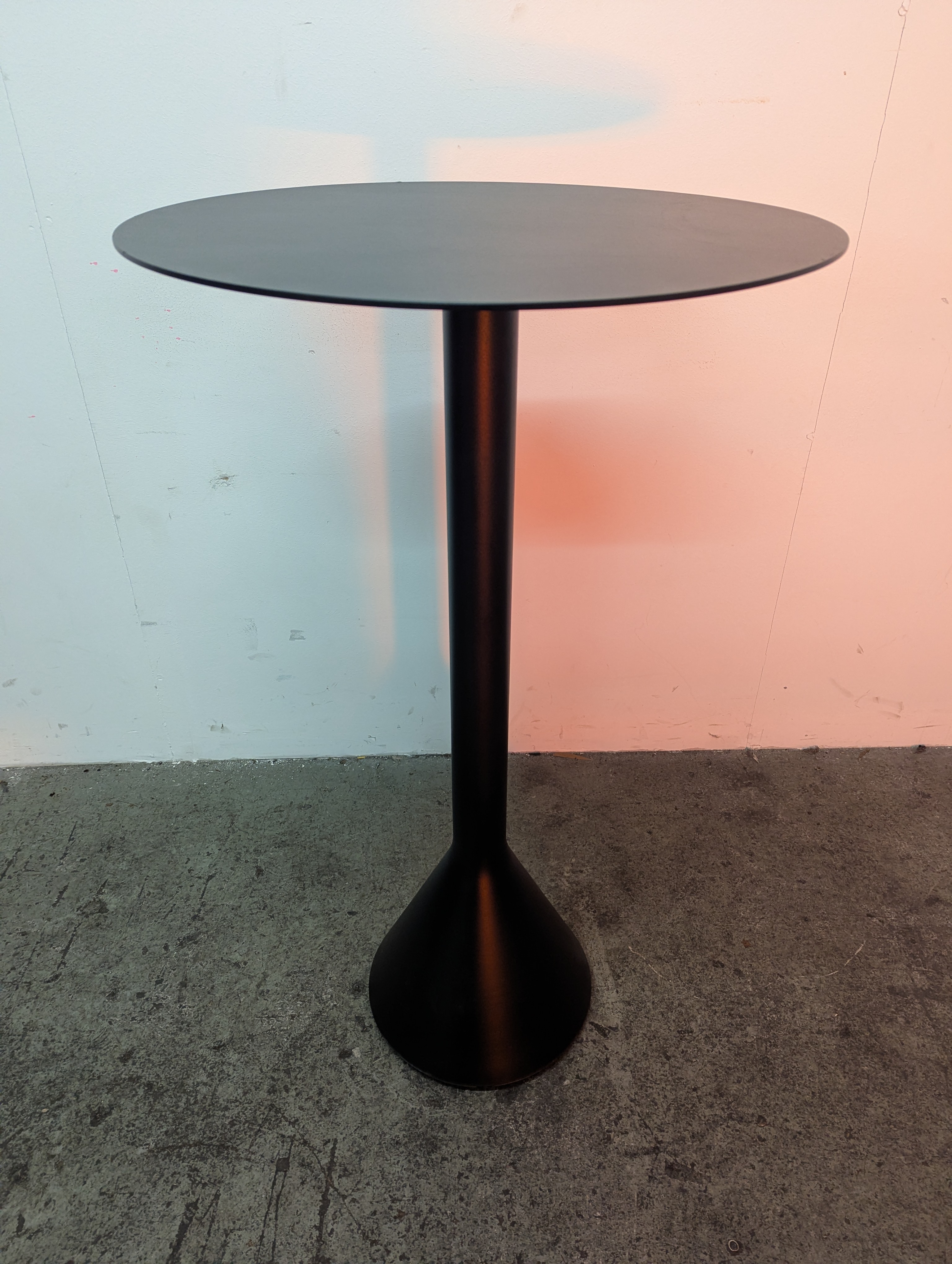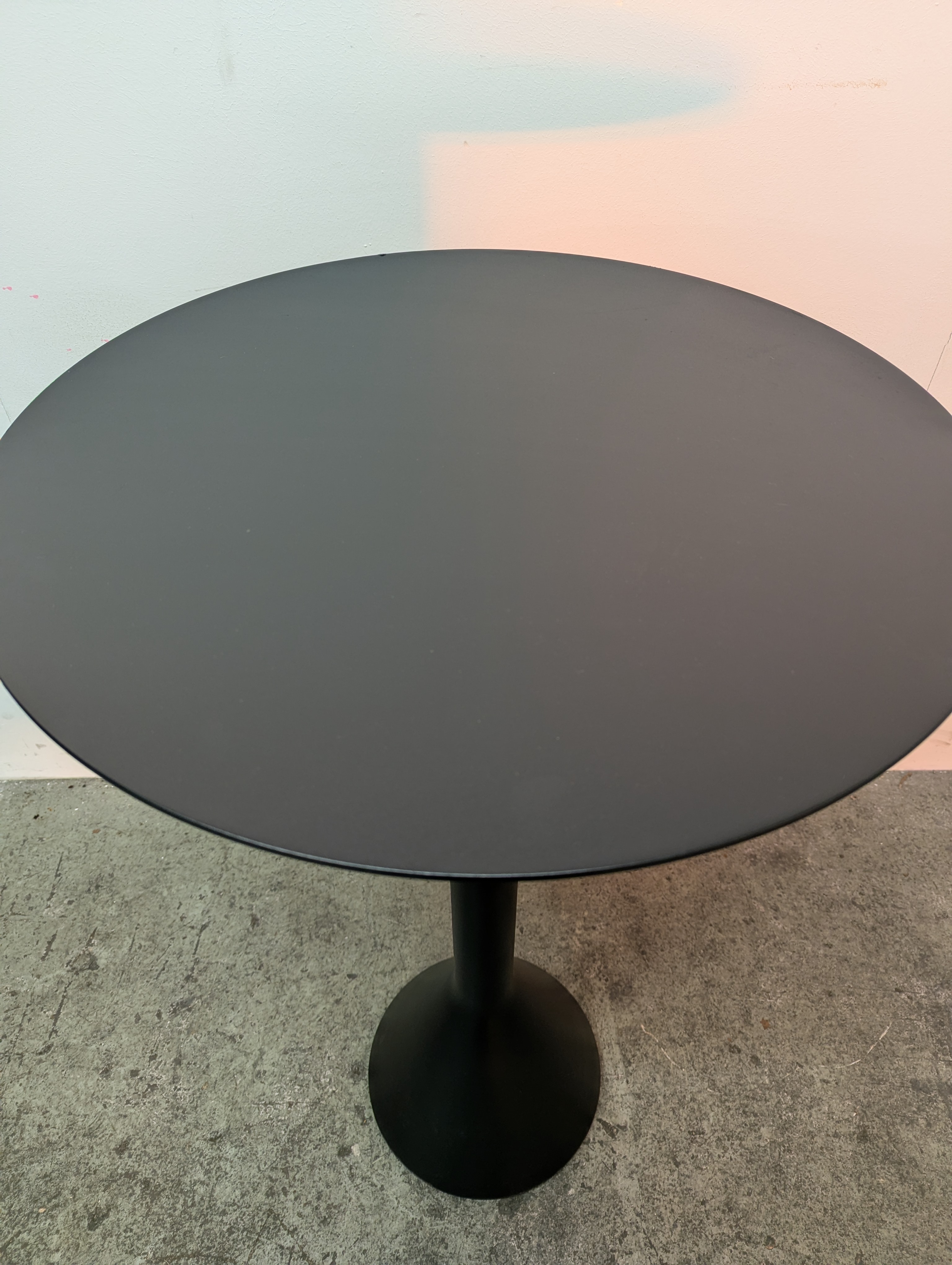 Its solid concrete base and ultra-thin steel tabletop share the same graphic design idiom as the rest of the series, enabling the table to be strong without being bulky and elegant without being fragile.