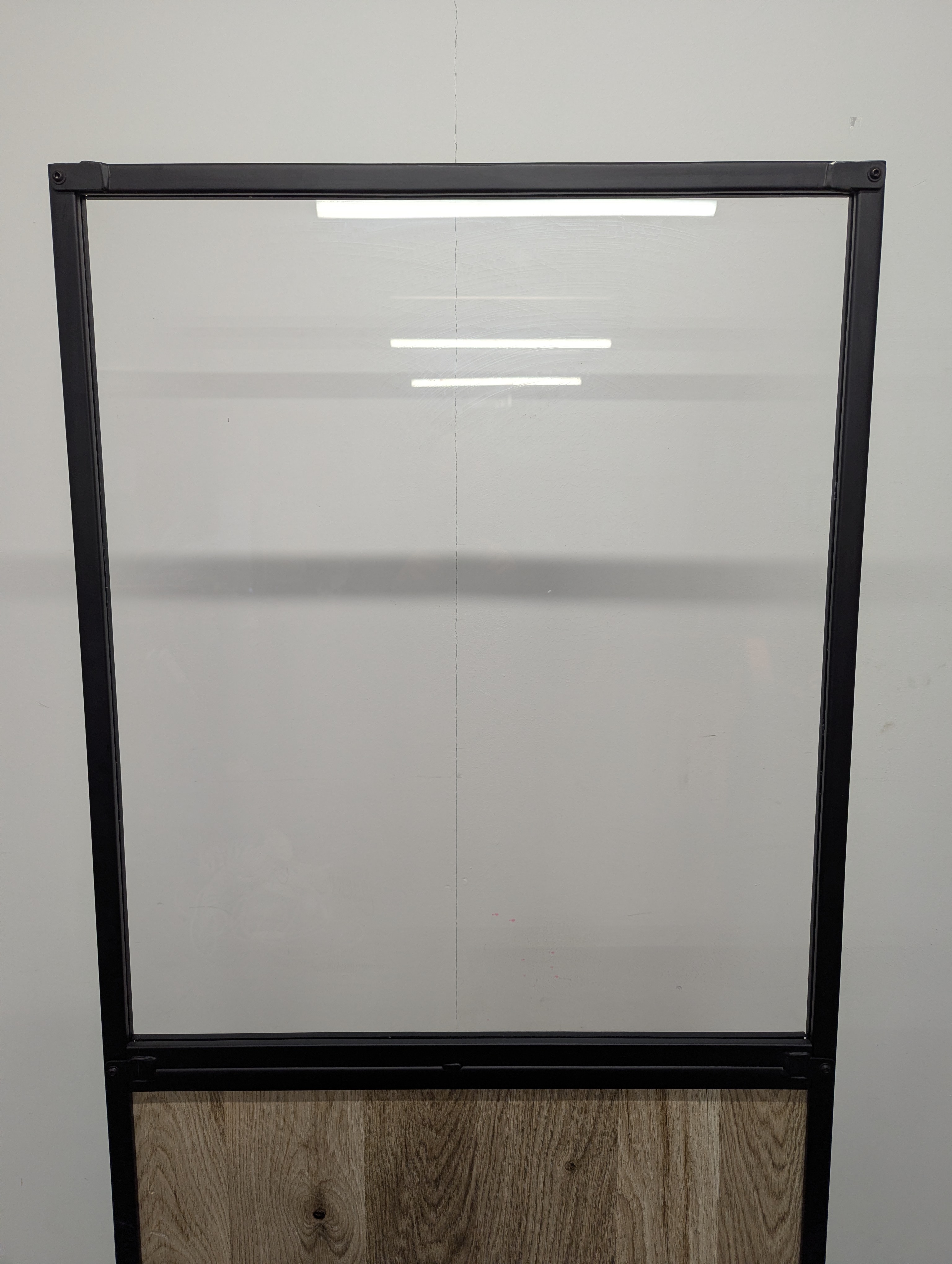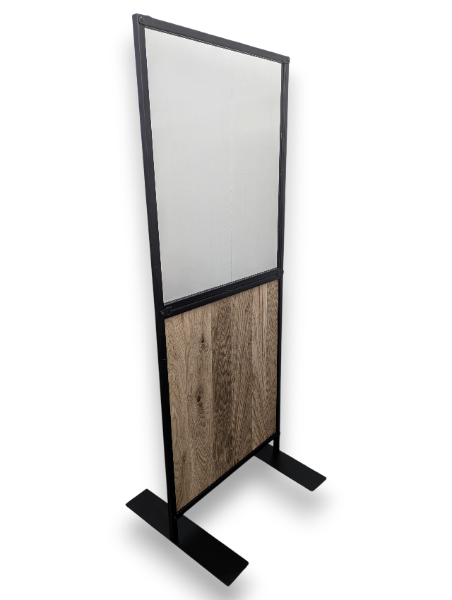 Made from high-quality materials, this divider features a stunning design that complements various decor styles. The transparent upper pane allows light in while creating a quieter environment behind the screen.