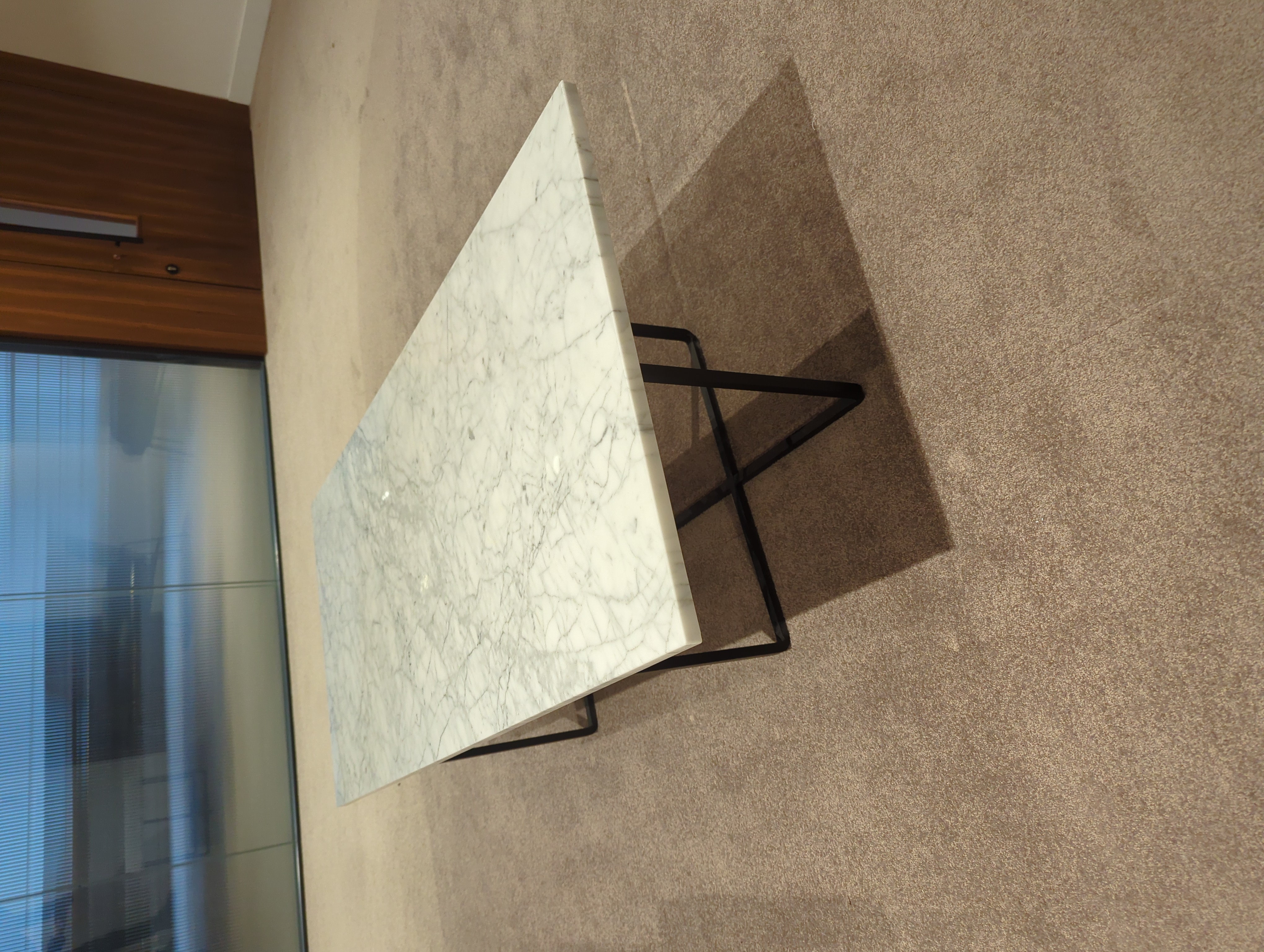Ninety coffee table, designed by Dennis Marquart for Ox Denmarq. An elegant coffee table with straight lines and a light silhouette. The timeless design and choice of high-quality materials make Ninety a long-life table. Ninety has a tabletop of beautiful marble and base of powder coated steel.