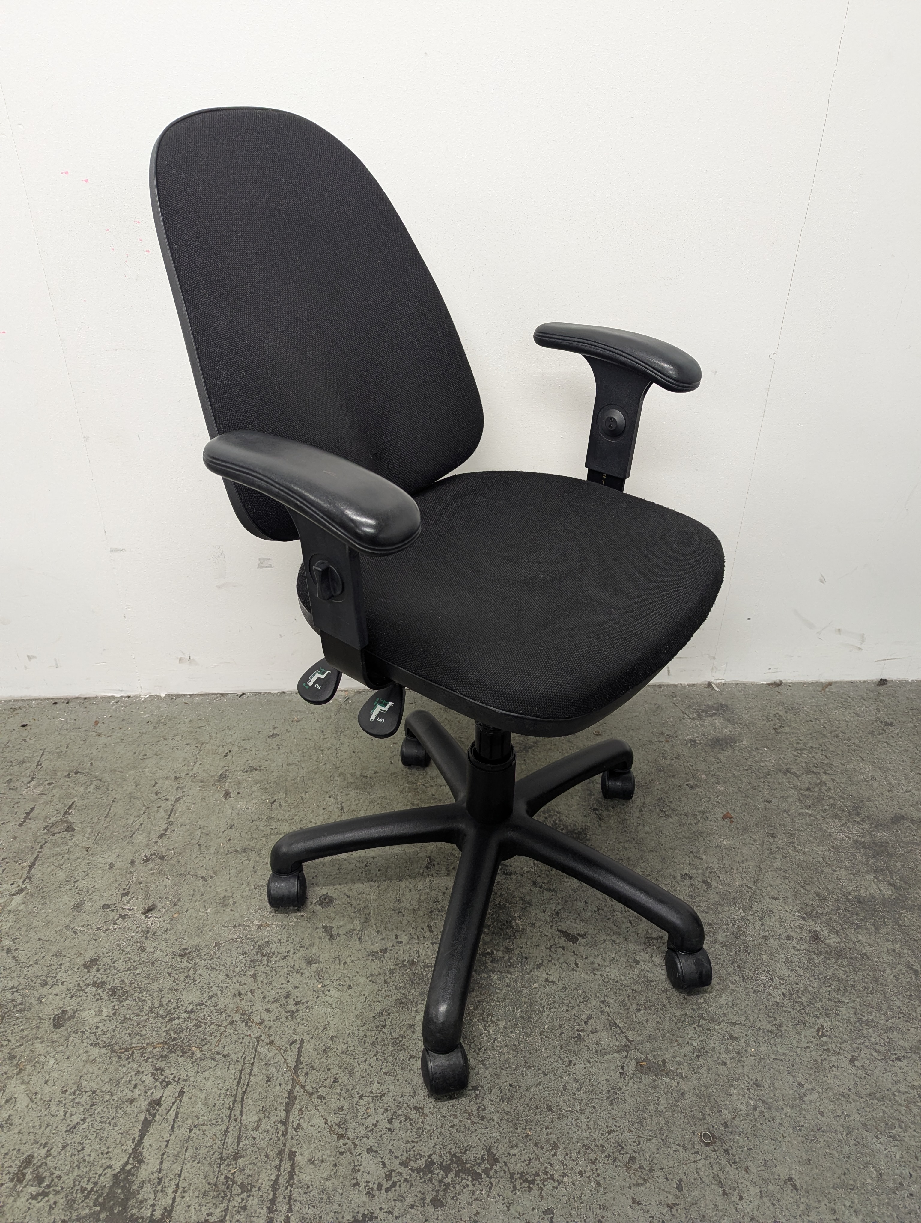 Seat height, back tilt and arm height adjustment.