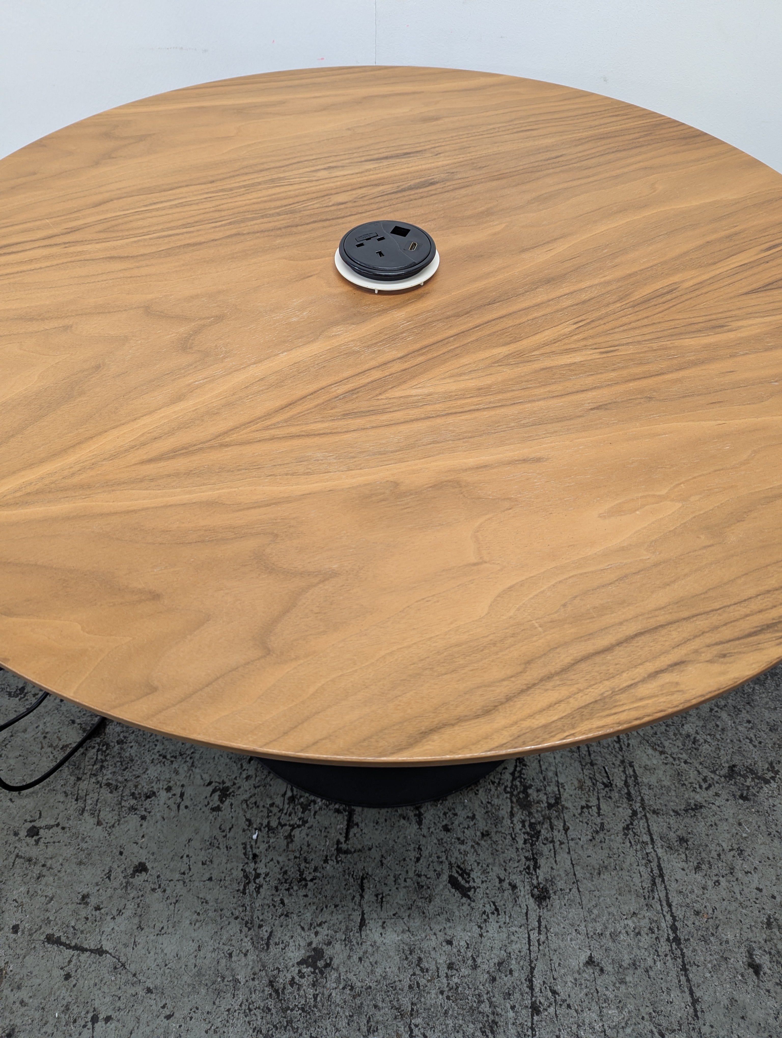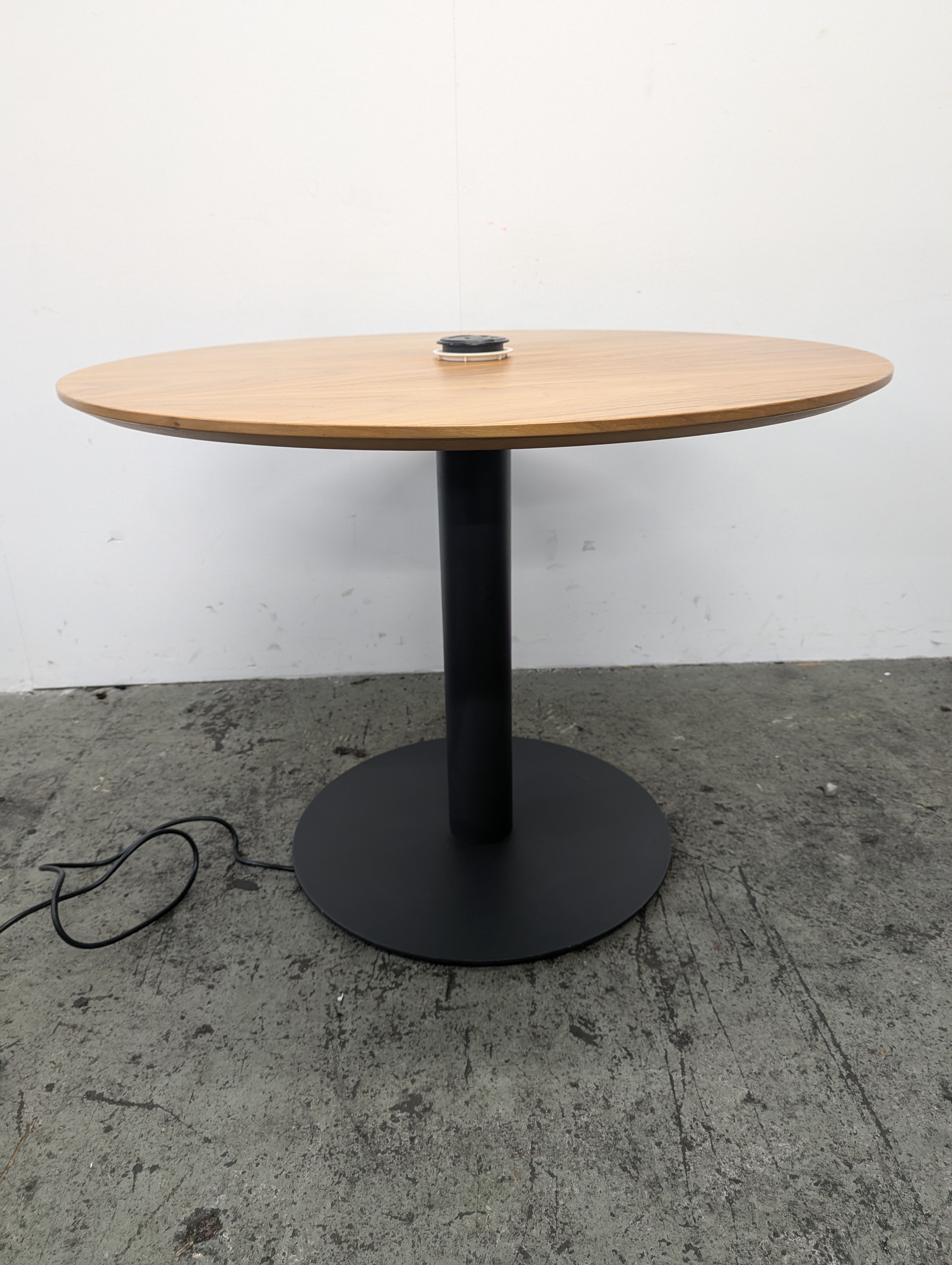 Elevate your office space with this beautiful Wooden Meeting Table with a sleek black metal base.
