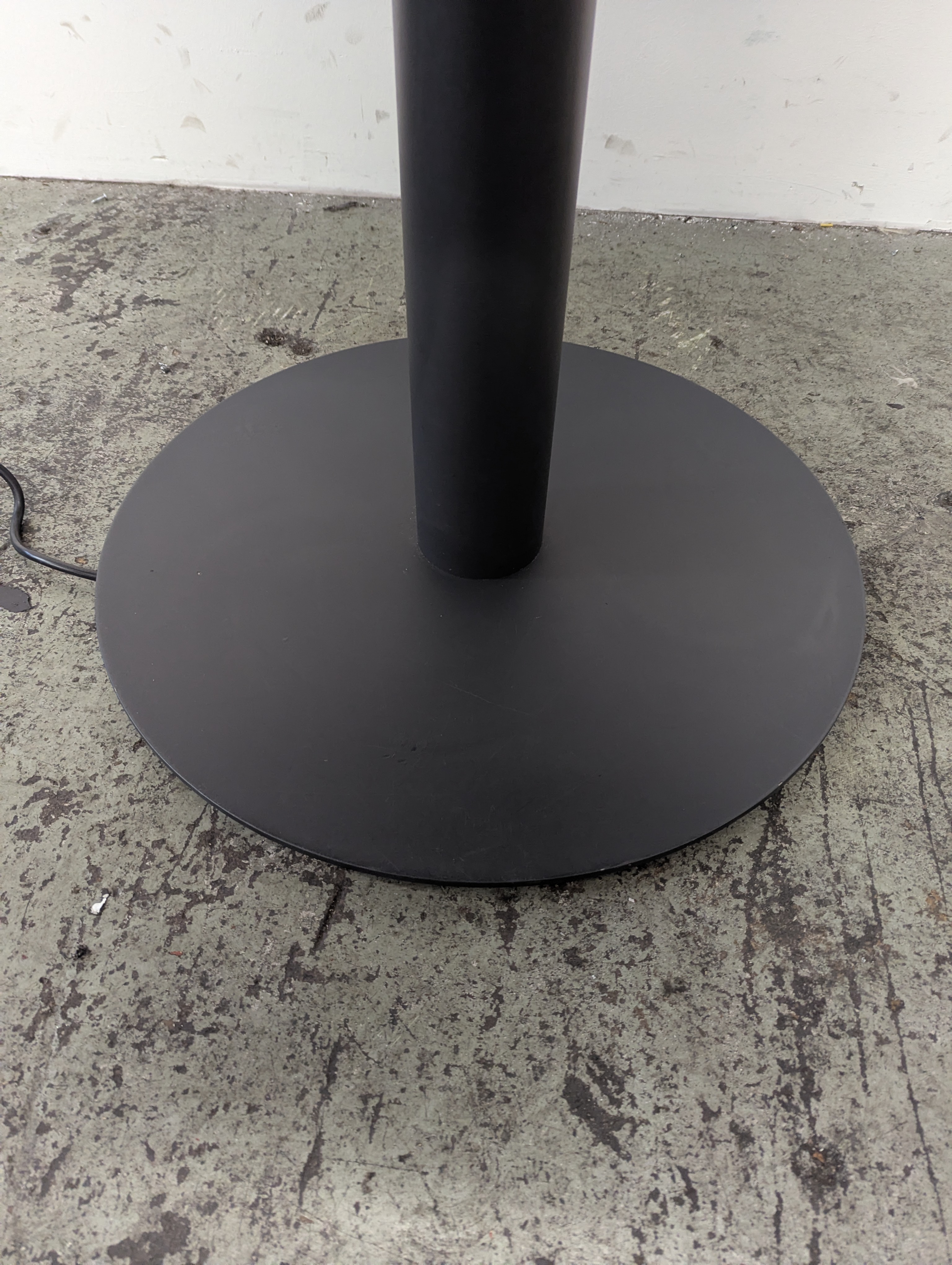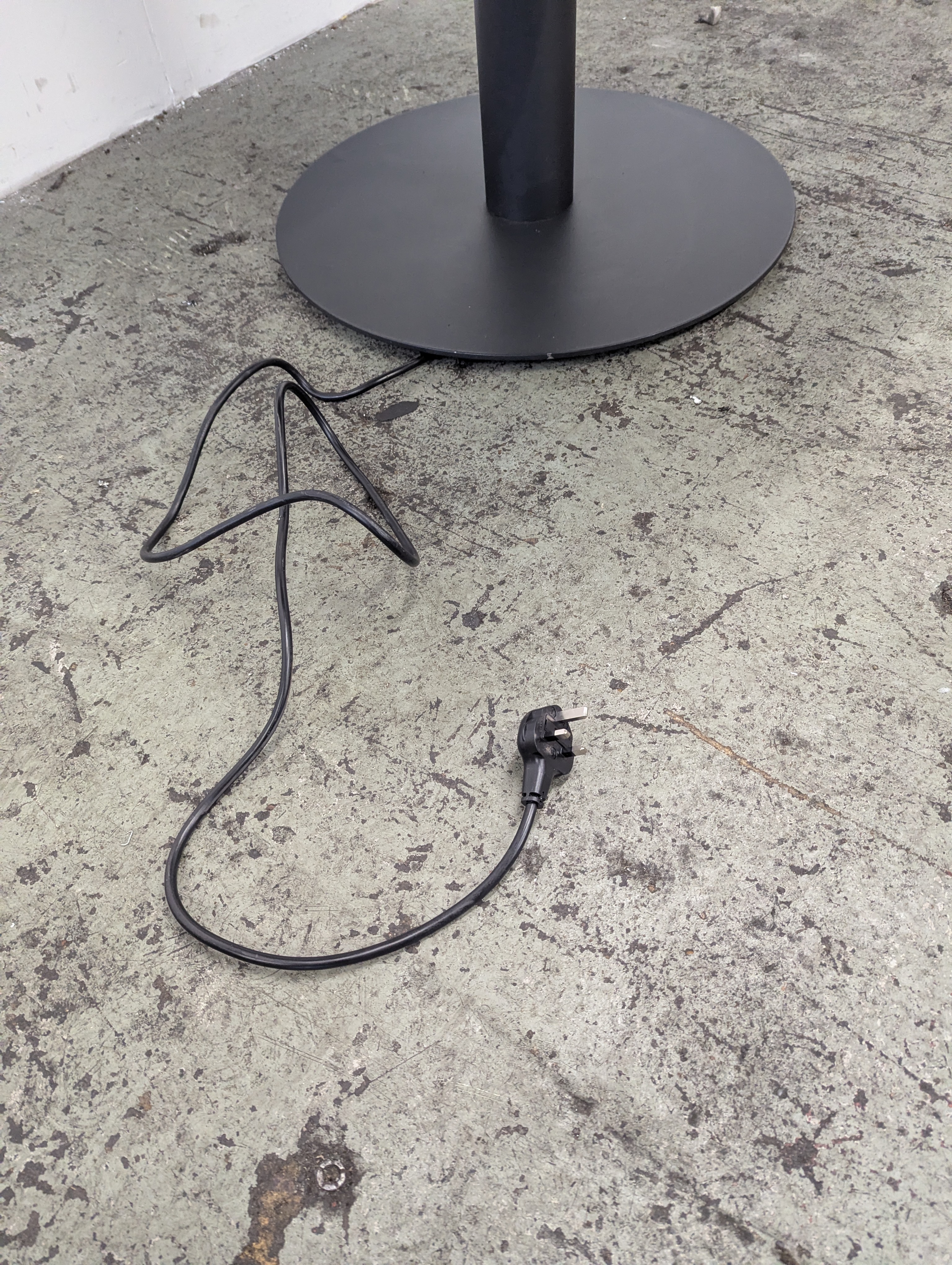 Standard plug and port for HDMI cable. Cables run through central column and out underneath the base to connect to a plug.